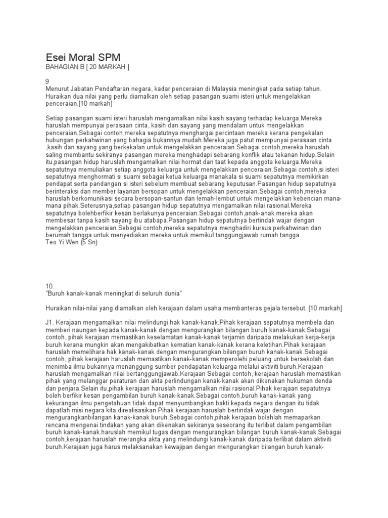 Web Isphenrea Contoh esei pendidikan moral tingkatan 4 spm Contoh Esei Kerja Kursus Pendidikan Moral Spm Related Information. Tugasan Harian Menulis karangan berdasarkan isu berkaitan nilai moral laporan kerja amal. Web Exclusive Through My Mind.